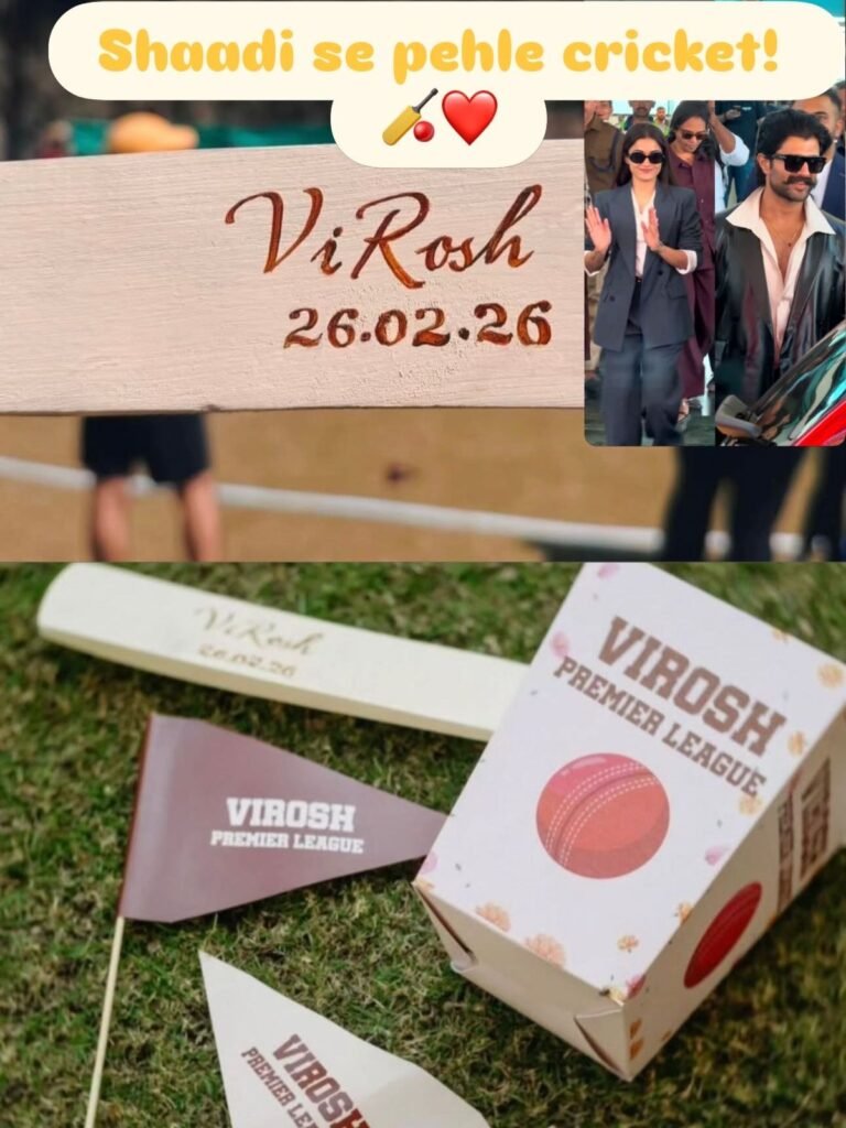 Before tying the knot, the duo hosted a lively cricket match between the ladkiwaale and ladkewaale. The event, adorably titled Virosh Premier League, featured customised cricket bats engraved with ViRosh and their wedding date, along with themed flags and even personalised match props.